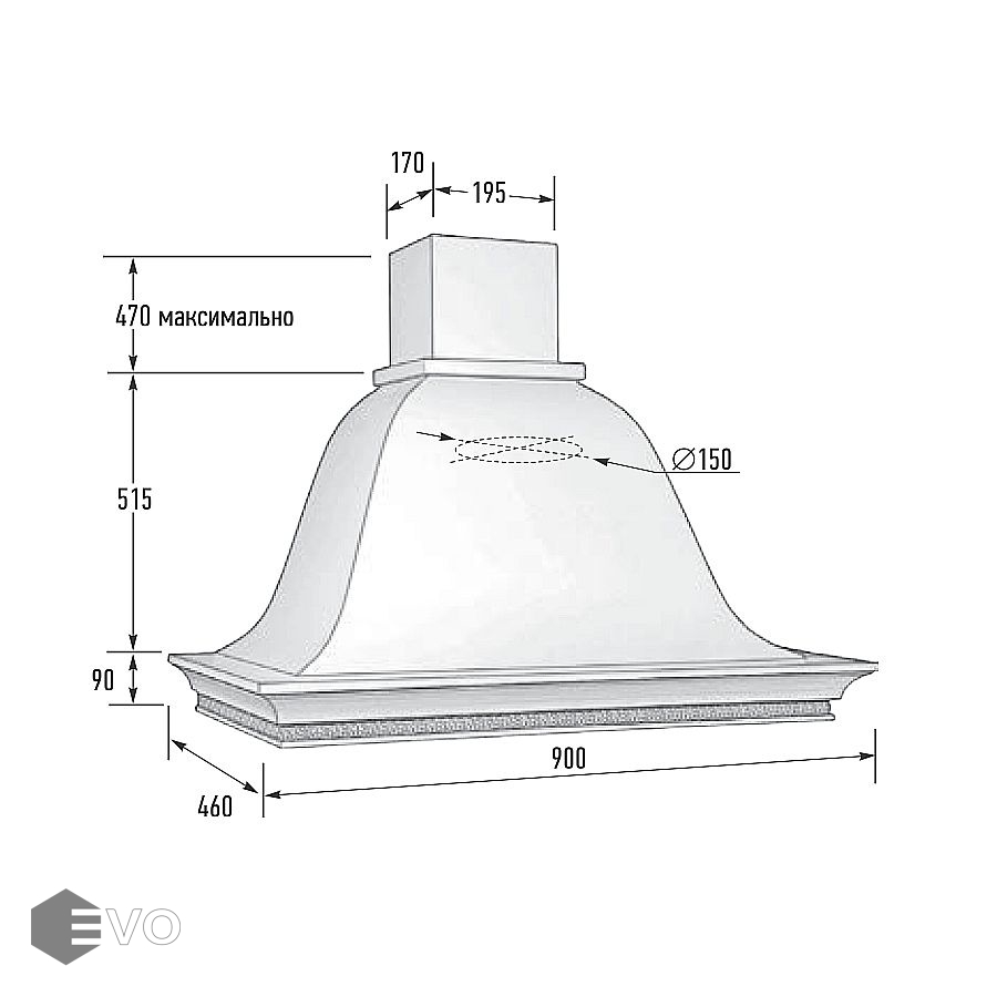 - Диаметр воздуховода, мм: 150