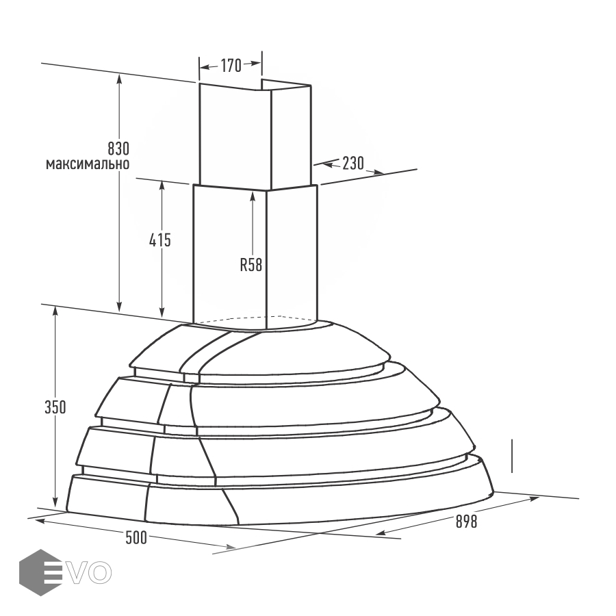 - Высота установки над электрическими варочными поверхностями, мм: 650