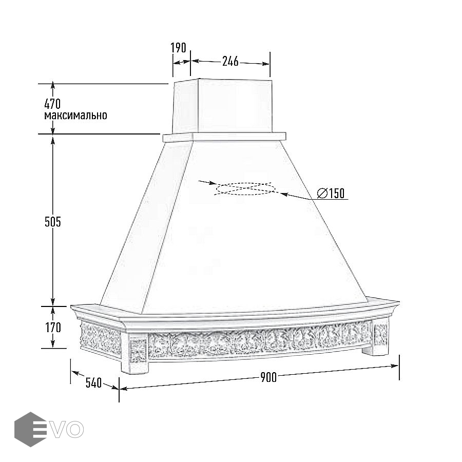 - Диаметр воздуховода, мм: 150