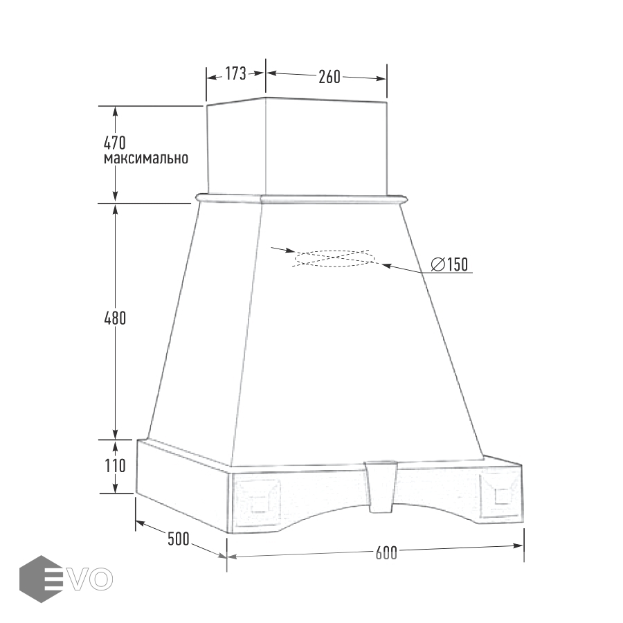 - Диаметр воздуховода, мм: 150