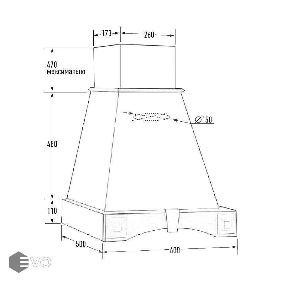 - Диаметр воздуховода, мм: 150
