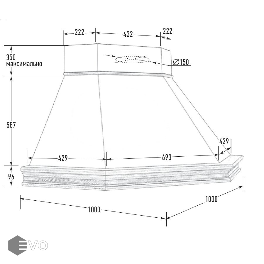 - Диаметр воздуховода, мм: 150