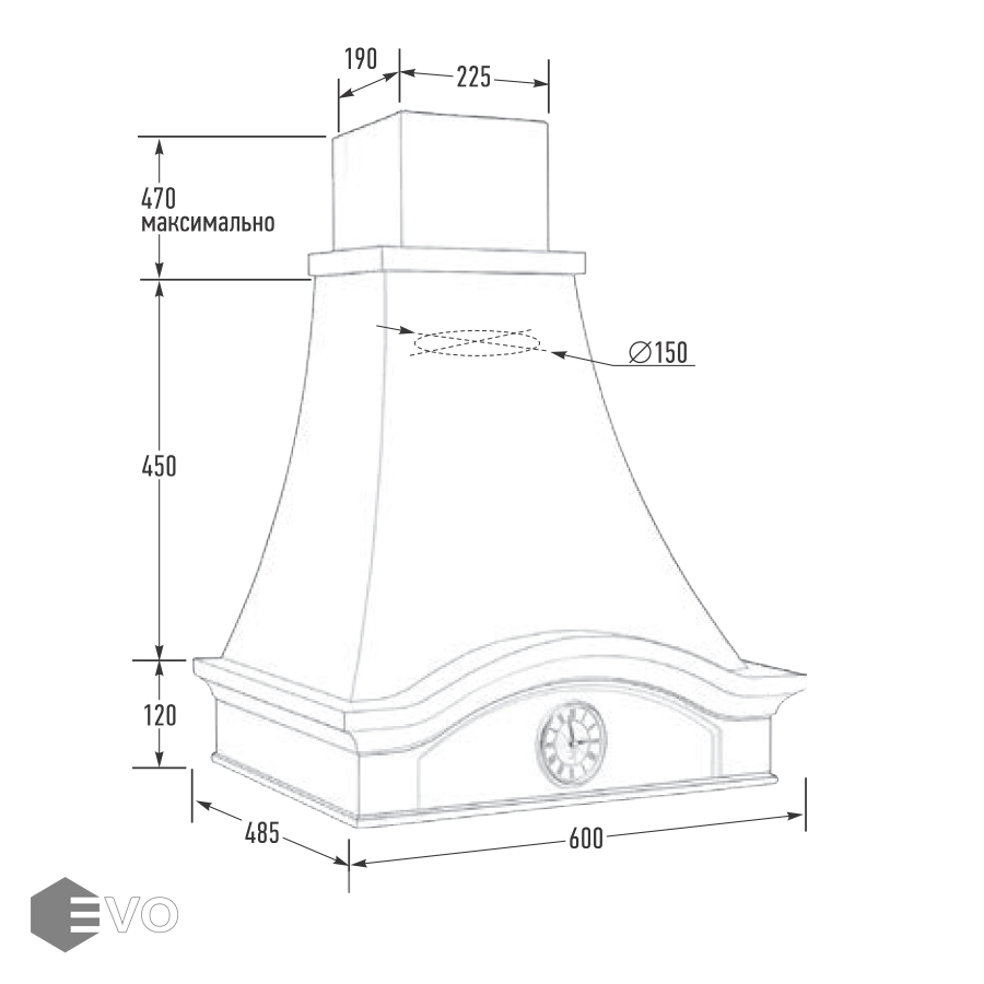 Купольная вытяжка Viaona Cappe Инфинити 60 с часами inca 550 бежевый муар – вытяжка выполнена в стиле кантри и предназначена для настенного монтажа, работает в режимах отвода и циркуляции, поэтому загрязнения удаляются из комнаты и перенаправляются в воздуховод, при этом можно очистить воздух и использовать повторно за счет возвращения его в помещение. Купол изготовлен из пенополиуретана который обладает биологической нейтральностью и характеризуется повышенной прочностью, плотностью, водостойкостью.