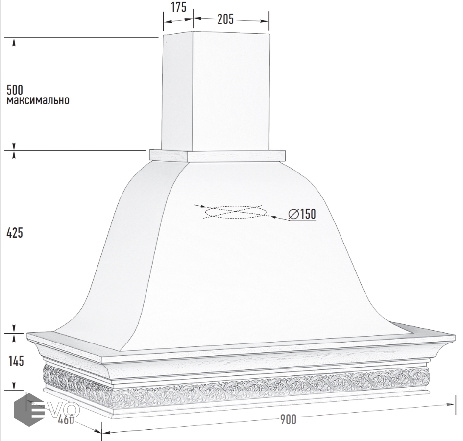 Купольная вытяжка Viaona Cappe Камелия алиери 90 inca 550 слоновая кость – вытяжка выполнена в стиле кантри и предназначена для настенного монтажа, работает в режимах отвода и циркуляции, поэтому загрязнения удаляются из комнаты и перенаправляются в воздуховод, при этом можно очистить воздух и использовать повторно за счет возвращения его в помещение. Купол изготовлен из пенополиуретана который обладает биологической нейтральностью и характеризуется повышенной прочностью, плотностью, водостойкостью.