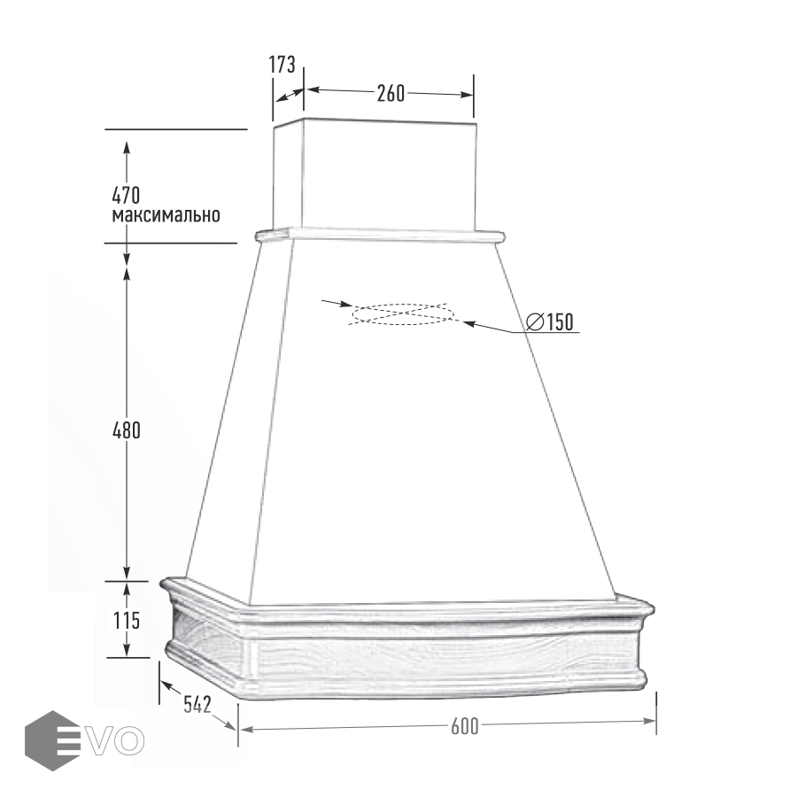 Купольная вытяжка Viaona Cappe Лагуна 60 inca 900 – трехскоростная вытяжка настенного монтажа в классическом дизайне в стиле кантри и предназначена для настенного монтажа. Модель работает в режимах отвода и циркуляции, поэтому загрязнения удаляются из комнаты и перенаправляются в воздуховод, при этом можно очистить воздух и использовать повторно за счет возвращения его в помещение.