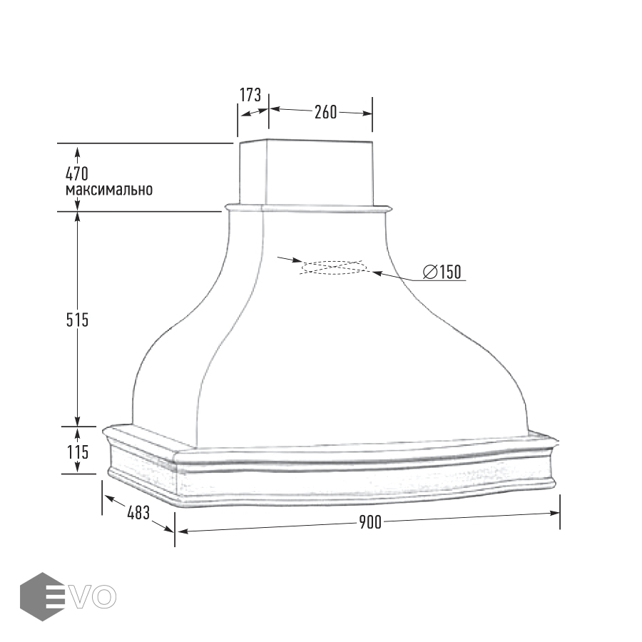 - Диаметр воздуховода, мм: 150