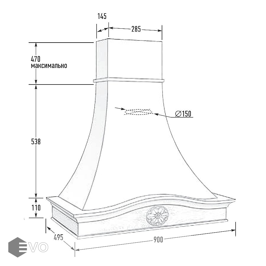 - Диаметр воздуховода, мм: 150