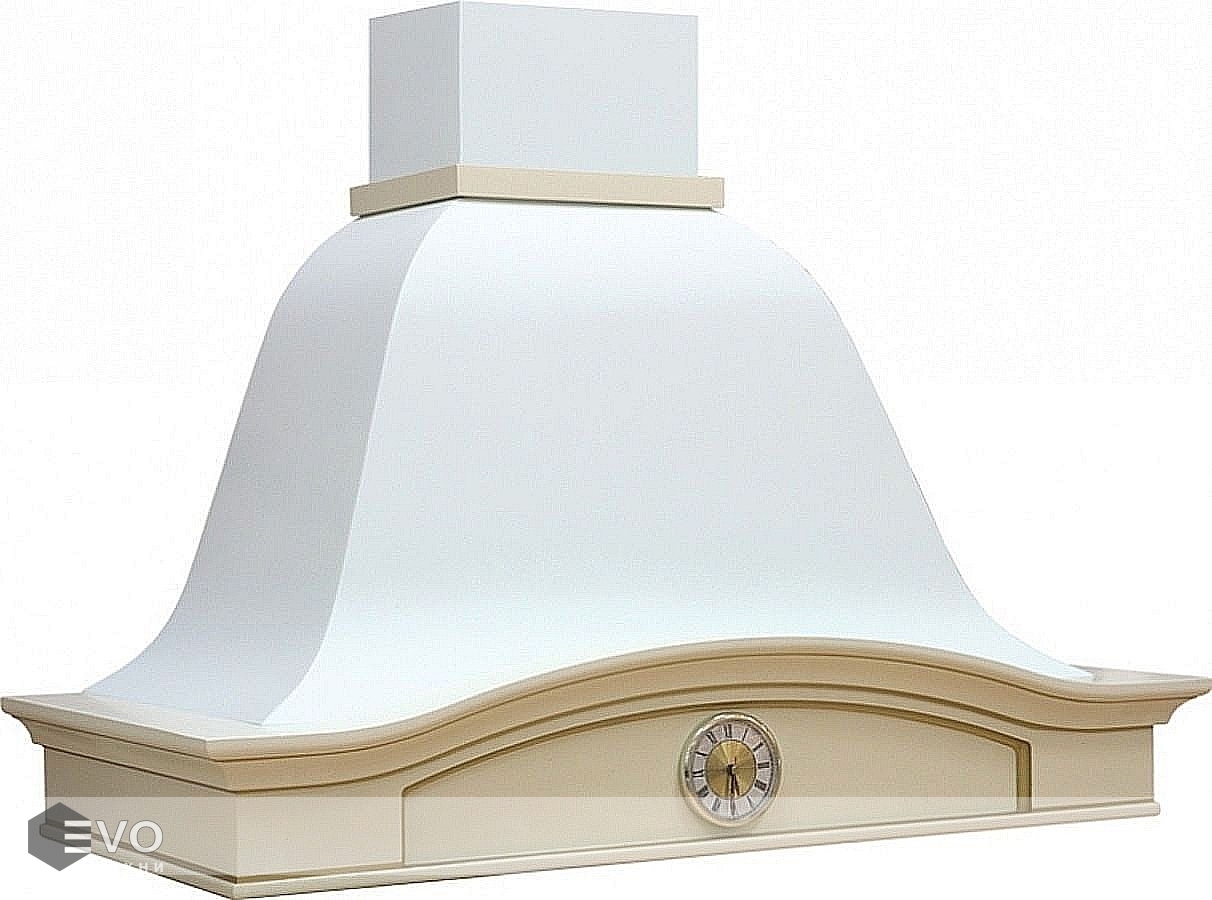 Купольная вытяжка Viaona Cappe Лилия 90 с часами c ВМ-550 ERA (elica) белый муар – вытяжка выполнена в стиле кантри и предназначена для настенного монтажа, работает в режимах отвода и циркуляции, поэтому загрязнения удаляются из комнаты и перенаправляются в воздуховод, при этом можно очистить воздух и использовать повторно за счет возвращения его в помещение. Купол изготовлен из пенополиуретана который обладает биологической нейтральностью и характеризуется повышенной прочностью, плотностью, водостойкостью.