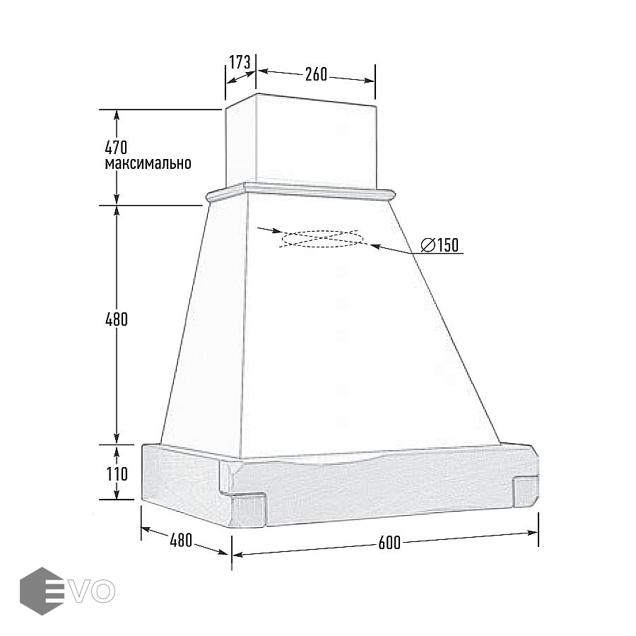 - Диаметр воздуховода, мм: 150