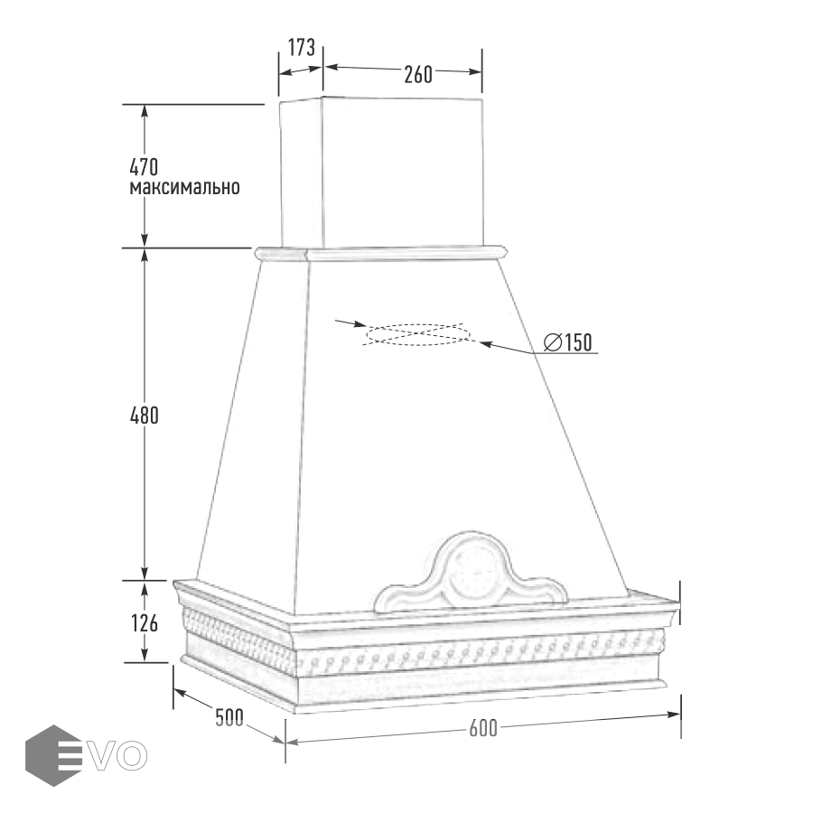- Диаметр воздуховода, мм: 150