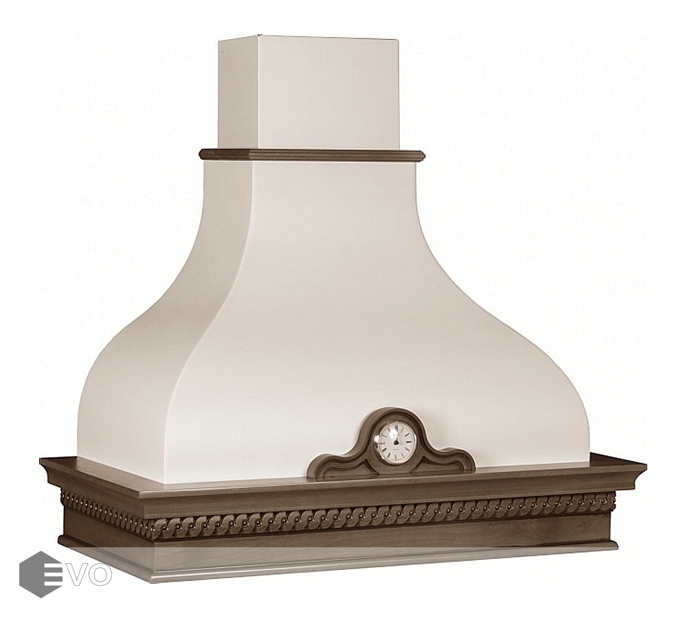 Купольная вытяжка Viaona Cappe Руджери 90 ППУ с часами ВМ-510/52 new faber слоновая кость – вытяжка выполнена в стиле кантри и предназначена для настенного монтажа, работает в режимах отвода и циркуляции, поэтому загрязнения удаляются из комнаты и перенаправляются в воздуховод, при этом можно очистить воздух и использовать повторно за счет возвращения его в помещение. Купол изготовлен из пенополиуретана который обладает биологической нейтральностью и характеризуется повышенной прочностью, плотностью, водостойкостью.