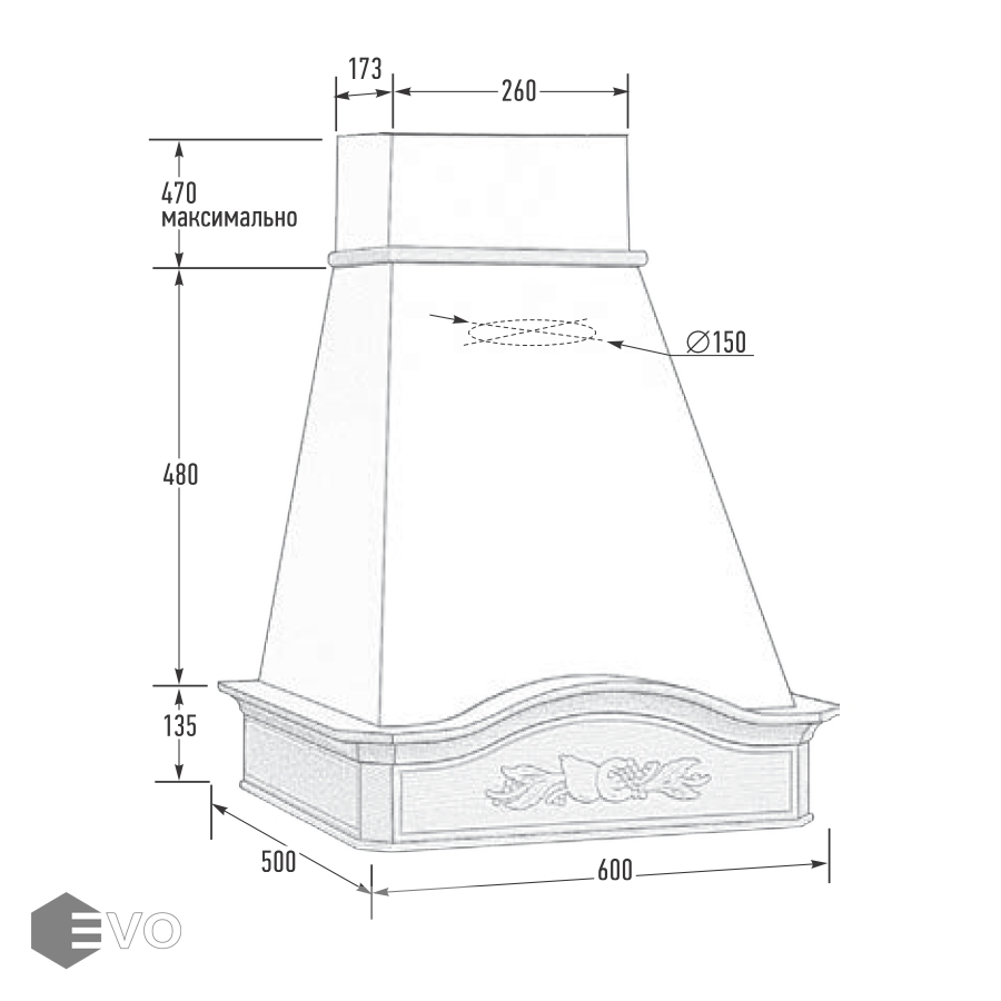 • Диаметр воздуховода, мм: 150