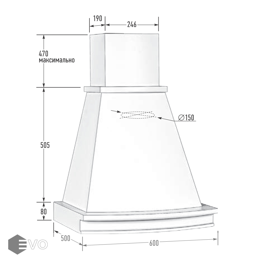 • Высота установки над электрическими варочными поверхностями, мм: 650