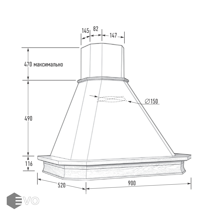 • Диаметр воздуховода, мм: 150