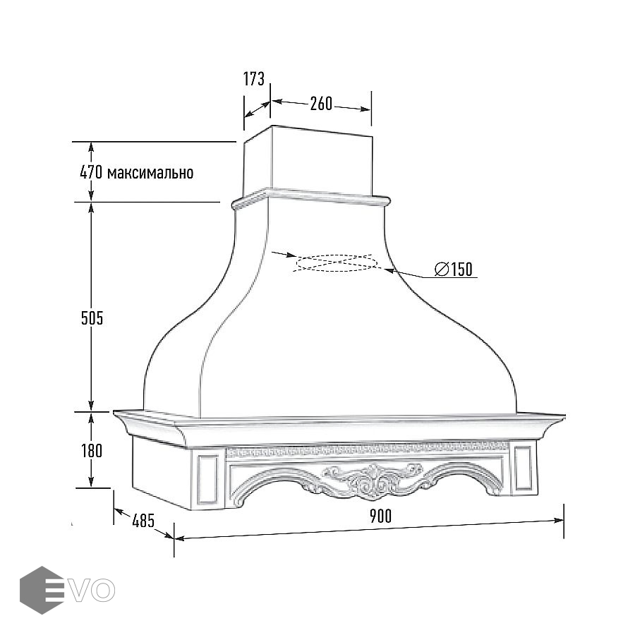 - Диаметр воздуховода, мм: 150