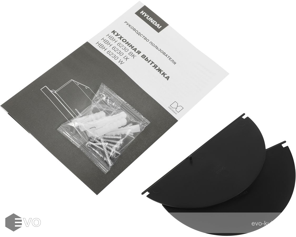 Комплектация:  Кухонная вытяжка; Набор крепежных элементов;  Обратный клапан.