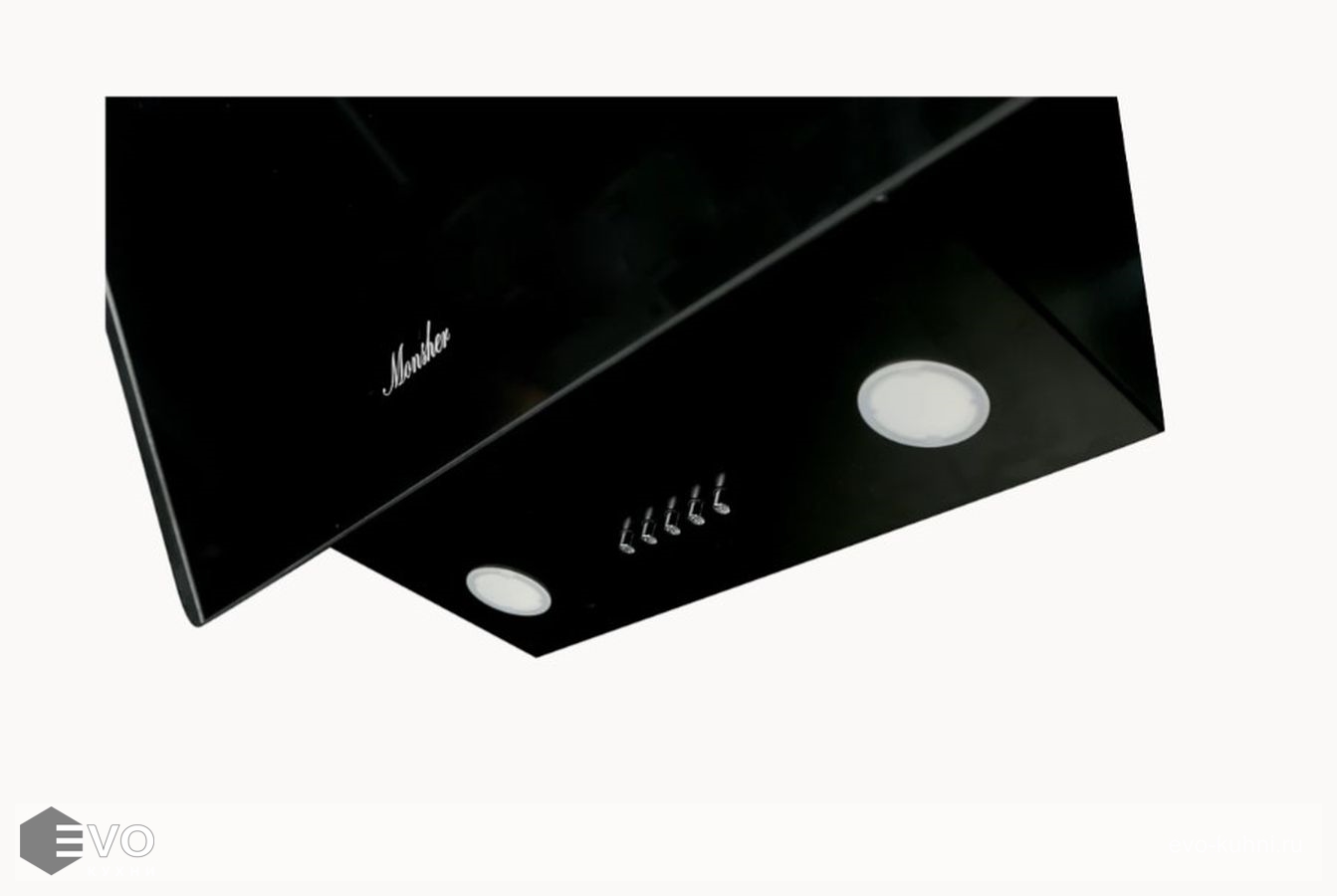 Вытяжка Monsher Lyon 60 Noir наклонного типа изготовлена из металла. Устройство управляется механически, работает в режимах рециркуляции и отвода воздуха с максимальной производительностью 1100 м³/ч. Уровень шума при работе — 53 дБ. Трехскоростное устройство оснащено светодиодным освещением.