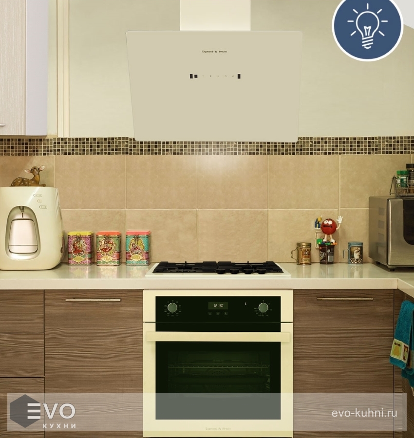 Вытяжка позволяет запрограммировать необходимое время работы с помощью таймера. Жировой фильтр предотвращает скапливание загрязнений на внутренних компонентах вытяжки. Из других особенностей отмечаются антивозвратный клапан и яркая светодиодная подсветка.
