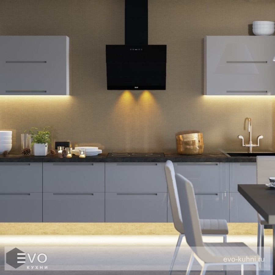 Галогенная подсветка послужит дополнительным источником света на кухне и сделает процесс готовки более комфортным.