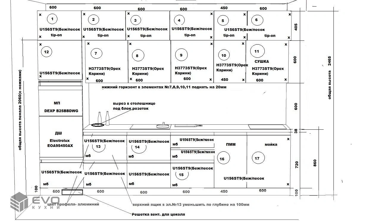 - Фасады: МДФ Пластик EGGER U156ST9(Беж/песок)+H3773ST9(Орех Карини).