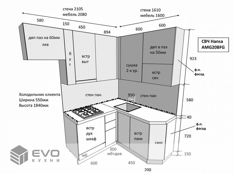 Кухни все изготавливаются по индивидуальному заказу. Мы подготовим дизайн-проект под любое помещение и конфигурацию. В зависимости от выбранных фасадов сможем изготовить нестандартные модули и размеры. Однако есть редкие исключения видов фасадов, по которым невозможны нестандарты, об этом вас предупредит дизайнер при выборе материалов для проекта.