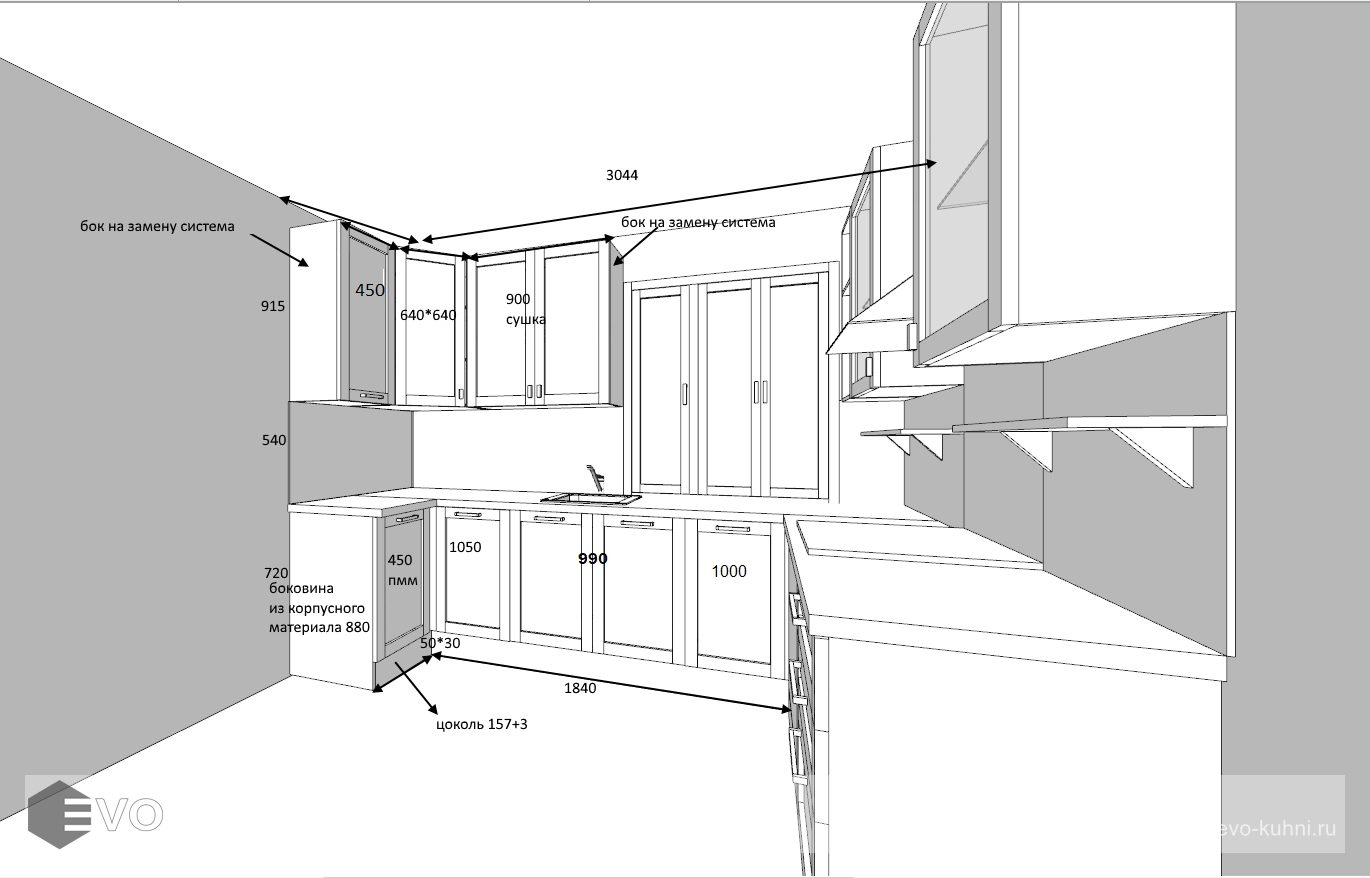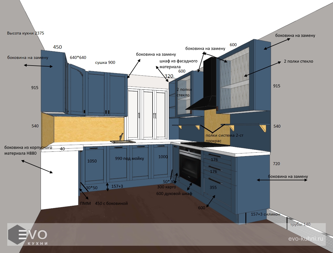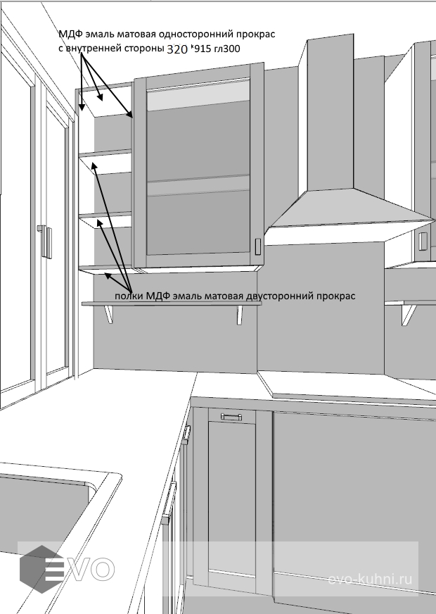 Кухни все изготавливаются по индивидуальному заказу. Мы подготовим дизайн-проект под любое помещение и конфигурацию. В зависимости от выбранных фасадов сможем изготовить нестандартные модули и размеры. Однако есть редкие исключения видов фасадов, по которым невозможны нестандарты, об этом вас предупредит дизайнер при выборе материалов для проекта.
