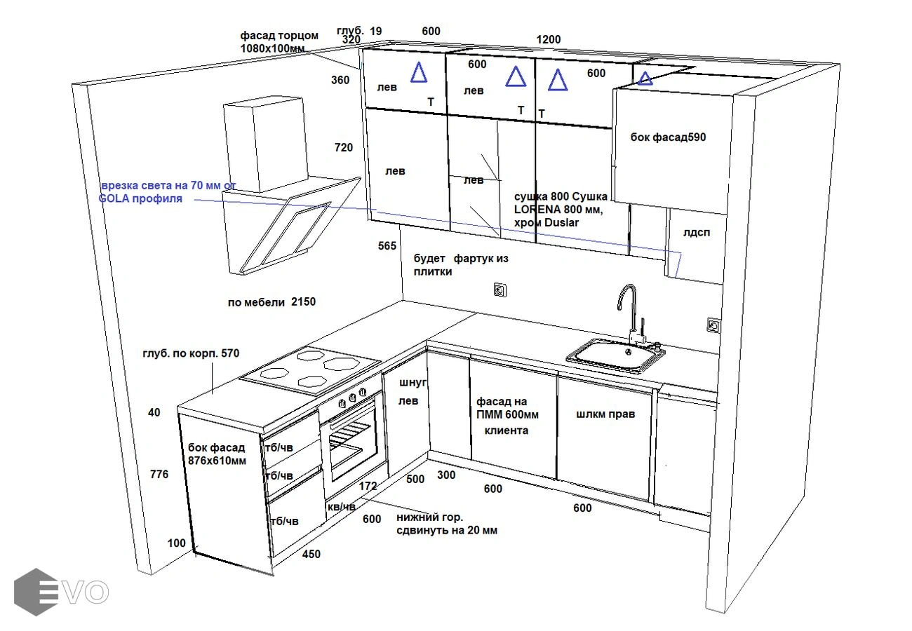 Кухни все изготавливаются по индивидуальному заказу. Мы подготовим дизайн-проект под любое помещение и конфигурацию. В зависимости от выбранных фасадов сможем изготовить нестандартные модули и размеры. Однако есть редкие исключения видов фасадов, по которым невозможны нестандарты, об этом вас предупредит дизайнер при выборе материалов для проекта.