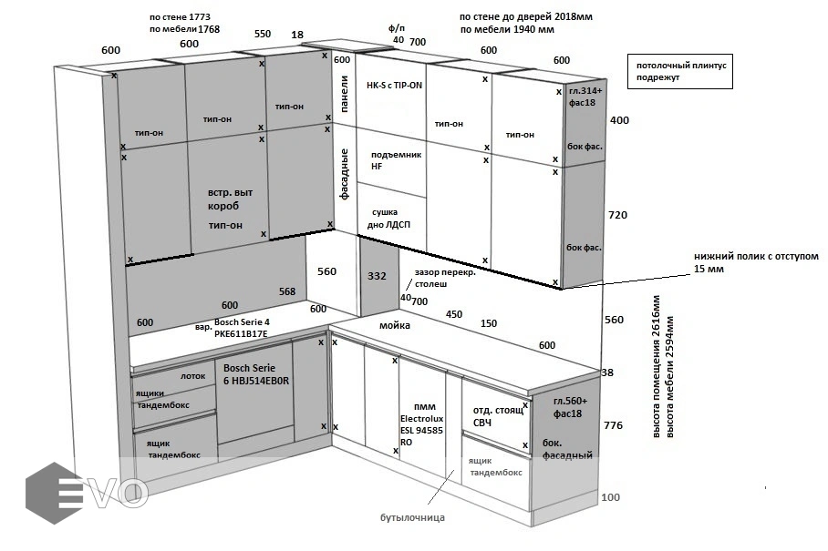 Дизайн-проект, максимально удовлетворяющий вашим пожеланиям, мы делаем бесплатно. Наши менеджеры-дизайнеры помогут вам определиться с моделью вашей будущей кухни, грамотно подберут встраиваемую технику, подберут цветовую гамму самой кухни исходя из стилистики интерьера и пожеланий клиента, составят технически грамотный проект под размеры помещения.
