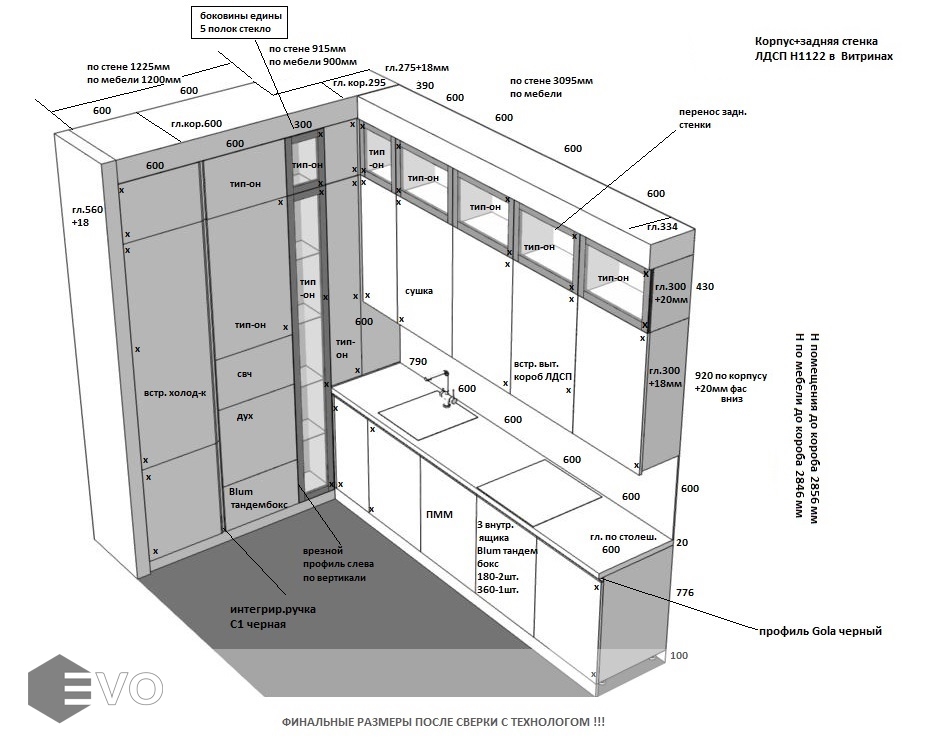 Дизайн-проект, максимально удовлетворяющий вашим пожеланиям, мы делаем бесплатно. Наши менеджеры-дизайнеры помогут вам определиться с моделью вашей будущей кухни, грамотно подберут встраиваемую технику, подберут цветовую гамму самой кухни исходя из стилистики интерьера и пожеланий клиента, составят технически грамотный проект под размеры помещения.