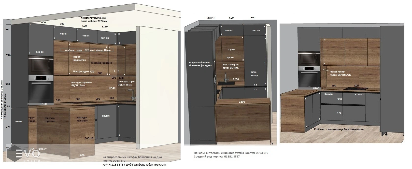 - Фасады: ЛДСП Egger 18мм H1181 ST37 Дуб Галифакс табак, ЛДСП Egger 18мм PerfectSense Matt U961 PM Чёрный графит.