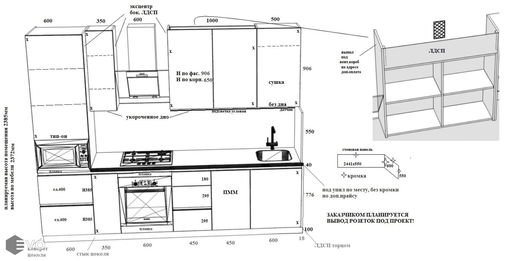 Дизайн-проект, максимально удовлетворяющий вашим пожеланиям, мы делаем бесплатно. Наши менеджеры-дизайнеры помогут вам определиться с моделью вашей будущей кухни, грамотно подберут встраиваемую технику, подберут цветовую гамму самой кухни исходя из стилистики интерьера и пожеланий клиента, составят технически грамотный проект под размеры помещения.