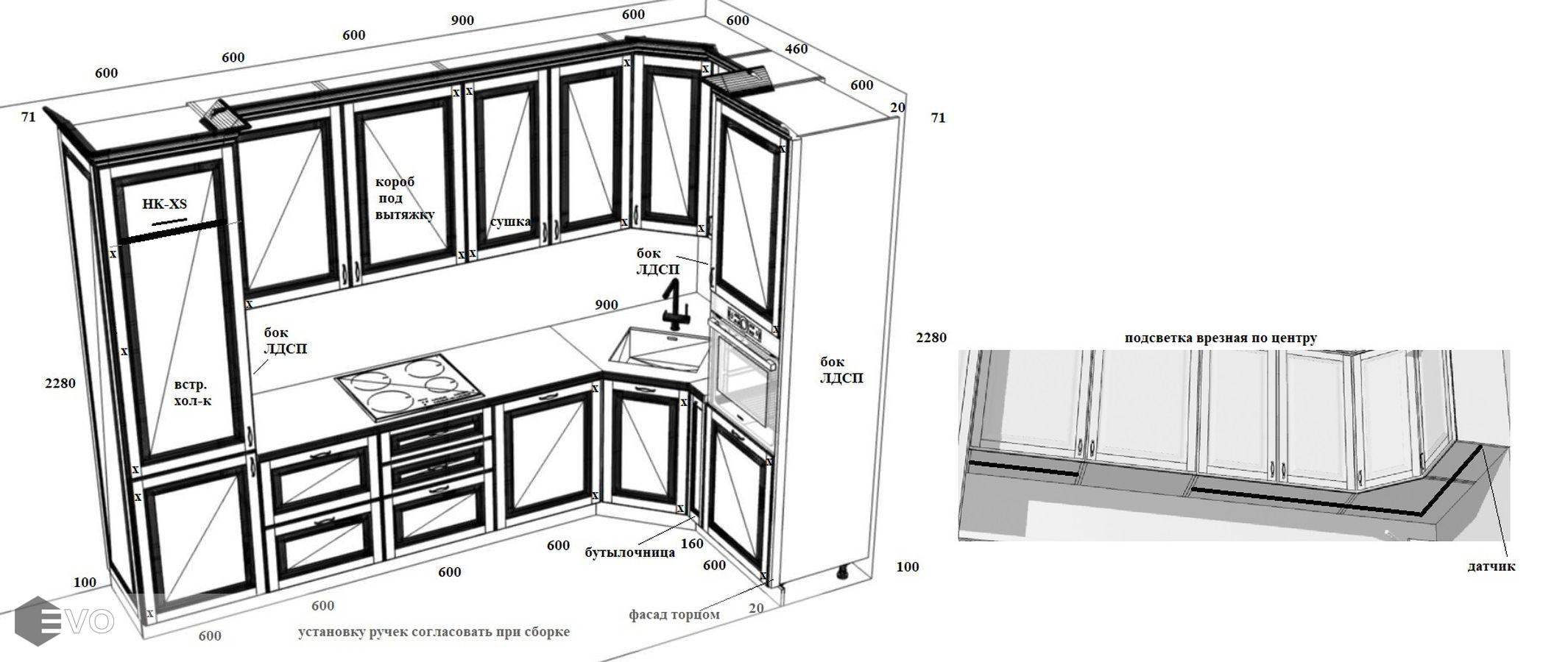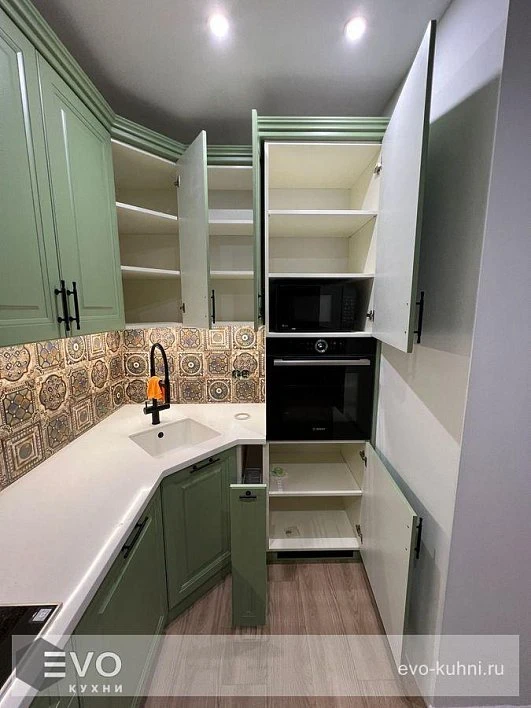 Кухни все изготавливаются по индивидуальному заказу. Мы подготовим дизайн-проект под любое помещение и конфигурацию. В зависимости от выбранных фасадов сможем изготовить нестандартные модули и размеры. Однако есть редкие исключения видов фасадов, по которым невозможны нестандарты, об этом вас предупредит дизайнер при выборе материалов для проекта.