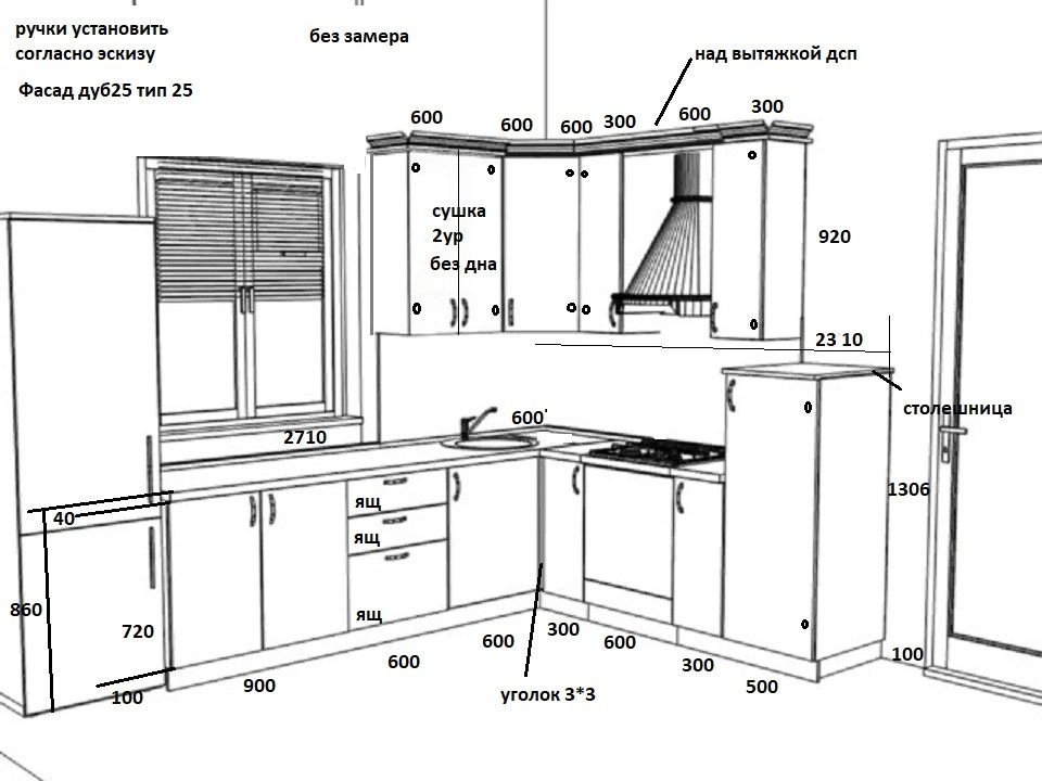 *в стоимость включено мебель, столешница, фурнитура, мойка, вытяжка, сушка, ручки. Замер, доставка и сборка .