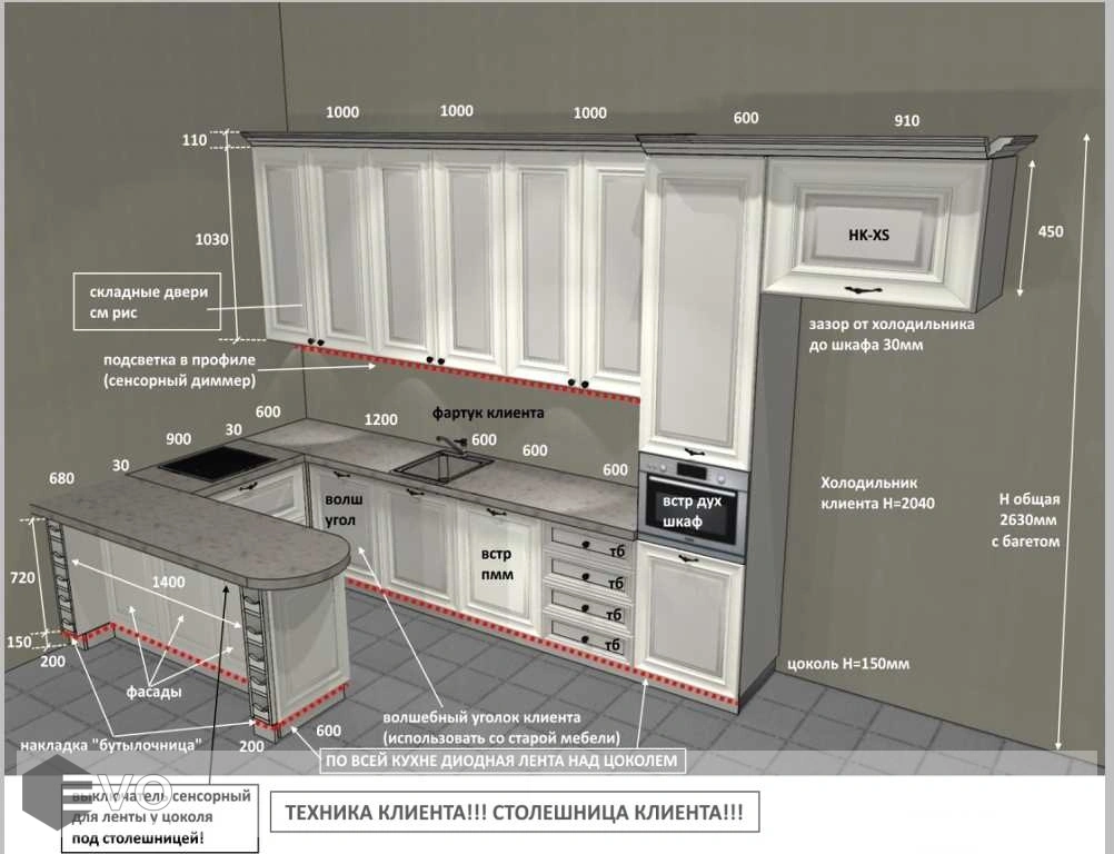 *в стоимость включено мебель, фурнитура, освещение, сушка, ручки, лоток под ст.приборы. Замер, доставка и сборка .
