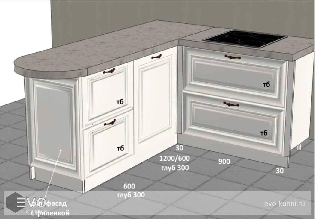 Кухни все изготавливаются по индивидуальному заказу. Мы подготовим дизайн-проект под любое помещение и конфигурацию. В зависимости от выбранных фасадов сможем изготовить нестандартные модули и размеры. Однако есть редкие исключения видов фасадов, по которым невозможны нестандарты, об этом вас предупредит дизайнер при выборе материалов для проекта.