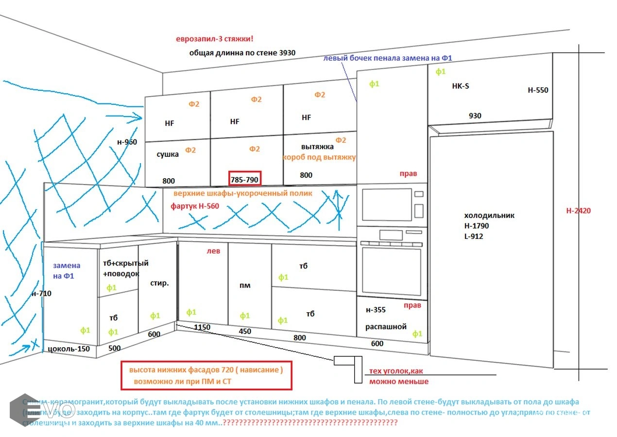 Кухни все изготавливаются по индивидуальному заказу. Мы подготовим дизайн-проект под любое помещение и конфигурацию. В зависимости от выбранных фасадов сможем изготовить нестандартные модули и размеры. Однако есть редкие исключения видов фасадов, по которым невозможны нестандарты, об этом вас предупредит дизайнер при выборе материалов для проекта.