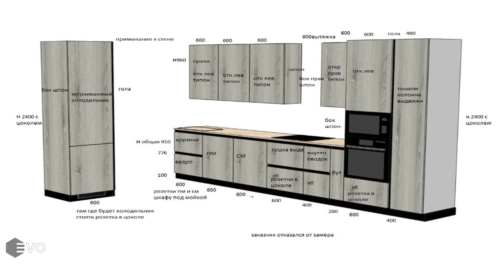 Дизайн-проект, максимально удовлетворяющий вашим пожеланиям, мы делаем бесплатно. Наши менеджеры-дизайнеры помогут вам определиться с моделью вашей будущей кухни, грамотно подберут встраиваемую технику, подберут цветовую гамму самой кухни исходя из стилистики интерьера и пожеланий клиента, составят технически грамотный проект под размеры помещения.