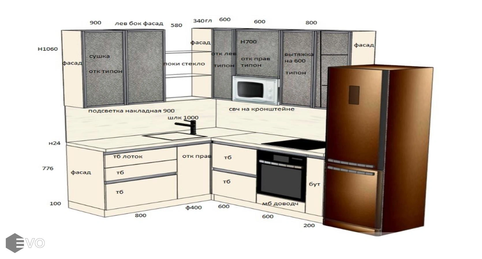 Кухни все изготавливаются по индивидуальному заказу. Мы подготовим дизайн-проект под любое помещение и конфигурацию. В зависимости от выбранных фасадов сможем изготовить нестандартные модули и размеры. Однако есть редкие исключения видов фасадов, по которым невозможны нестандарты, об этом вас предупредит дизайнер при выборе материалов для проекта.