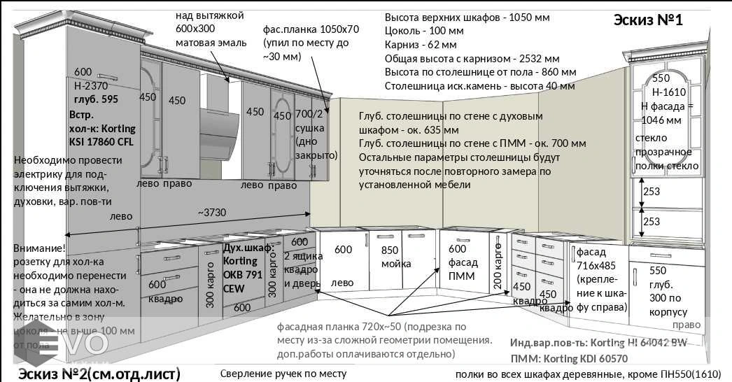 Дизайн-проект, максимально удовлетворяющий вашим пожеланиям, мы делаем бесплатно. Наши менеджеры-дизайнеры помогут вам определиться с моделью вашей будущей кухни, грамотно подберут встраиваемую технику, подберут цветовую гамму самой кухни исходя из стилистики интерьера и пожеланий клиента, составят технически грамотный проект под размеры помещения.
