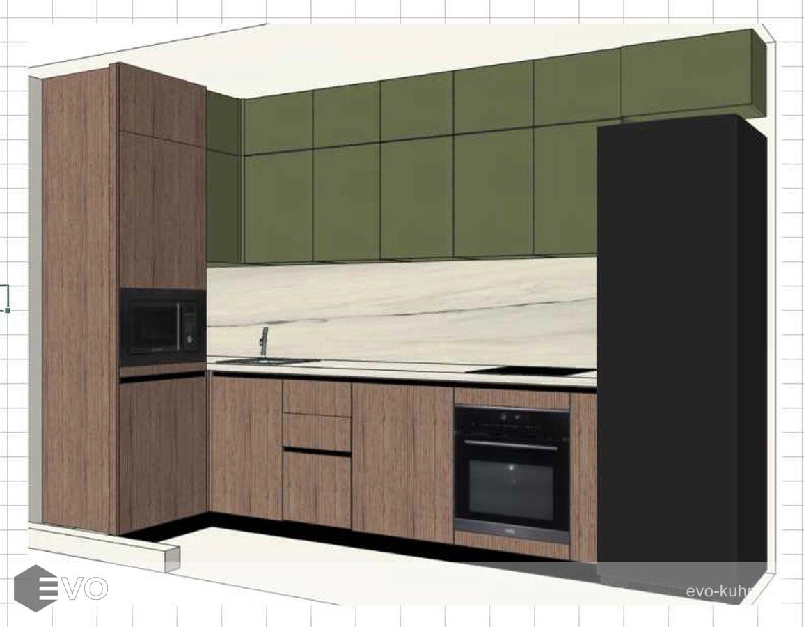 - Фасады: МДФ Пластик AGT 3027 Forest Green / ЛДСП Egger H3133 ST12 Дуб Давос трюфель