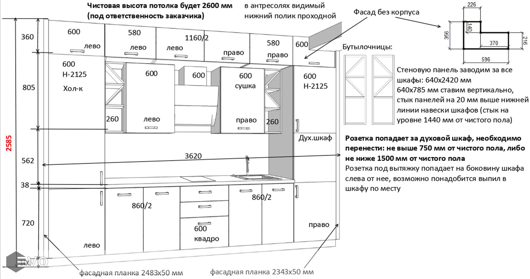 Дизайн-проект, максимально удовлетворяющий вашим пожеланиям, мы делаем бесплатно. Наши менеджеры-дизайнеры помогут вам определиться с моделью вашей будущей кухни, грамотно подберут встраиваемую технику, подберут цветовую гамму самой кухни исходя из стилистики интерьера и пожеланий клиента, составят технически грамотный проект под размеры помещения.