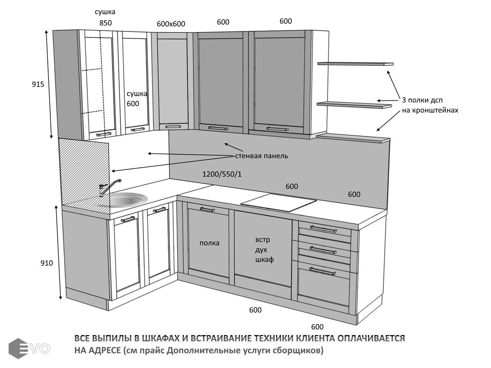 Кухни все изготавливаются по индивидуальному заказу. Мы подготовим дизайн-проект под любое помещение и конфигурацию. В зависимости от выбранных фасадов сможем изготовить нестандартные модули и размеры. Однако есть редкие исключения видов фасадов, по которым невозможны нестандарты, об этом вас предупредит дизайнер при выборе материалов для проекта.