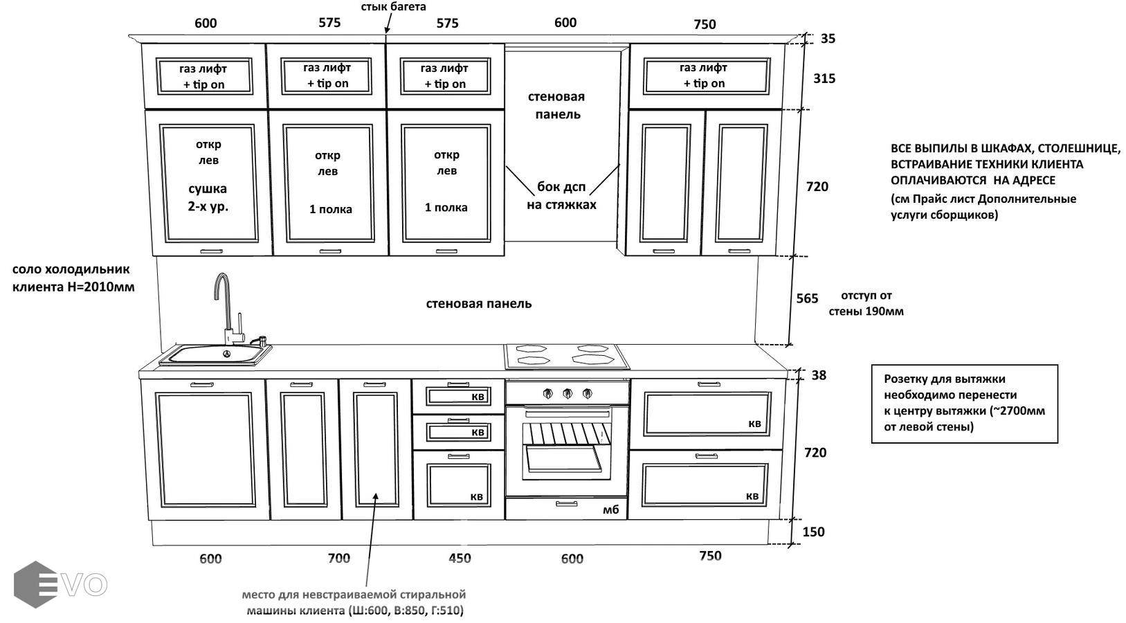 Дизайн-проект, максимально удовлетворяющий вашим пожеланиям, мы делаем бесплатно. Наши менеджеры-дизайнеры помогут вам определиться с моделью вашей будущей кухни, грамотно подберут встраиваемую технику, подберут цветовую гамму самой кухни исходя из стилистики интерьера и пожеланий клиента, составят технически грамотный проект под размеры помещения.