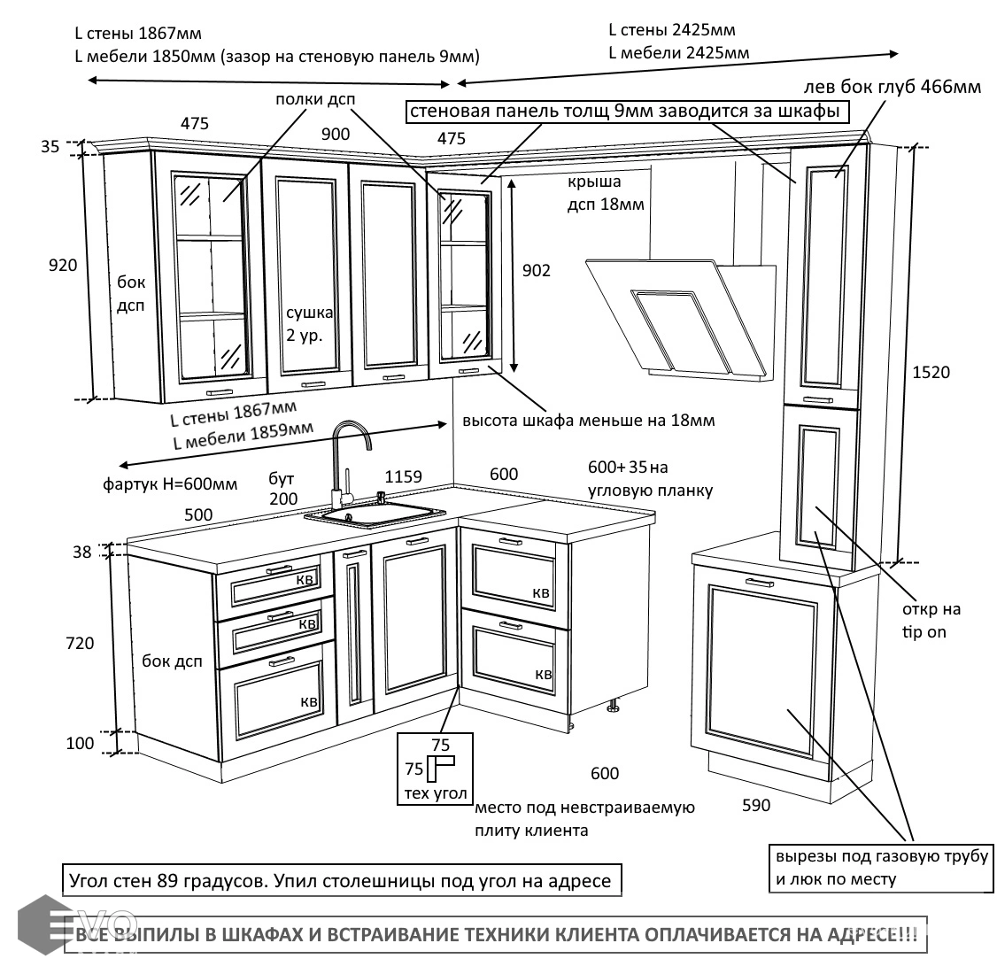 Кухни все изготавливаются по индивидуальному заказу. Мы подготовим дизайн-проект под любое помещение и конфигурацию. В зависимости от выбранных фасадов сможем изготовить нестандартные модули и размеры. Однако есть редкие исключения видов фасадов, по которым невозможны нестандарты, об этом вас предупредит дизайнер при выборе материалов для проекта.