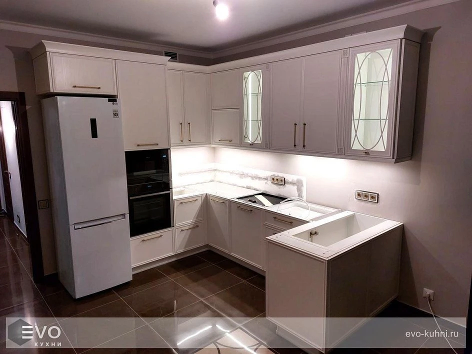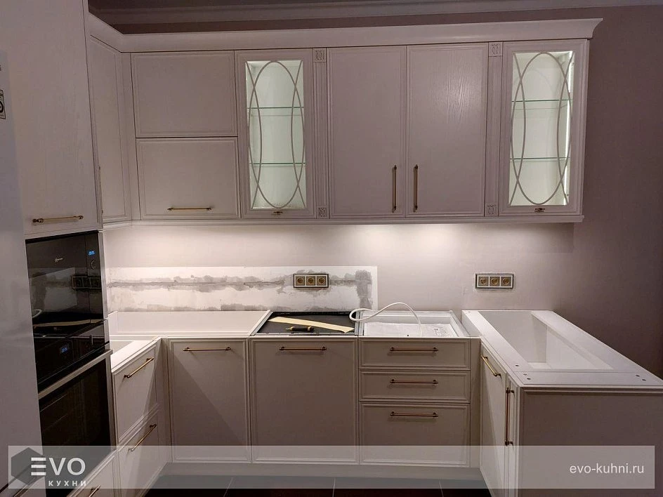 Кухни все изготавливаются по индивидуальному заказу. Мы подготовим дизайн-проект под любое помещение и конфигурацию. В зависимости от выбранных фасадов сможем изготовить нестандартные модули и размеры. Однако есть редкие исключения видов фасадов, по которым невозможны нестандарты, об этом вас предупредит дизайнер при выборе материалов для проекта.