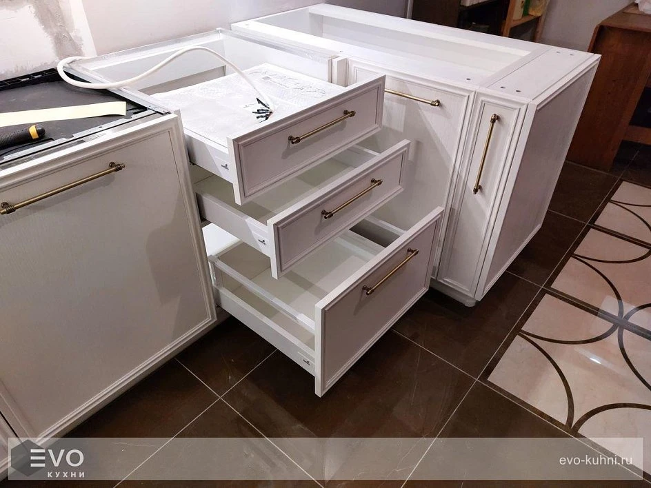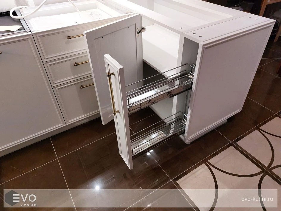 - Комплектация: Механизм Dynamic Corner в угловую базу правый отделка хром + белый, бутылочница с жестяным дном с доводчиком ширина фасада 150 мм VAUTH-SAGEL, Лоток 600 для TANDEMBOX OrgaTray (серебристый, белый) , Сушка двухуровневая с алюминиевой рамкой 600 Inoxa Gold.