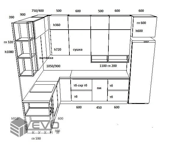 Кухни все изготавливаются по индивидуальному заказу. Мы подготовим дизайн-проект под любое помещение и конфигурацию. В зависимости от выбранных фасадов сможем изготовить нестандартные модули и размеры. Однако есть редкие исключения видов фасадов, по которым невозможны нестандарты, об этом вас предупредит дизайнер при выборе материалов для проекта.