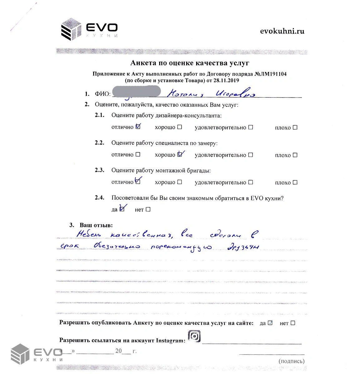 - Фартук: клиента.