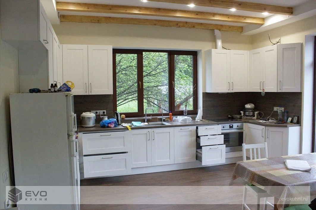 П-образная кухня неоклассика Бьянко пленка/МДФ РК200205