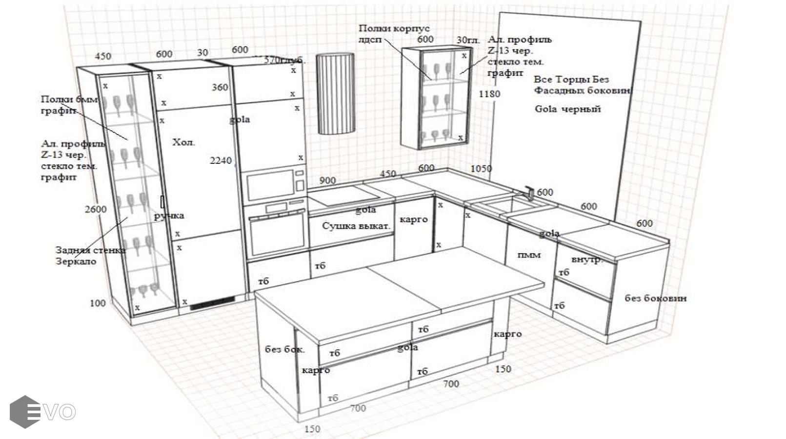 Кухни все изготавливаются по индивидуальному заказу. Мы подготовим дизайн-проект под любое помещение и конфигурацию. В зависимости от выбранных фасадов сможем изготовить нестандартные модули и размеры. Однако есть редкие исключения видов фасадов, по которым невозможны нестандарты, об этом вас предупредит дизайнер при выборе материалов для проекта.